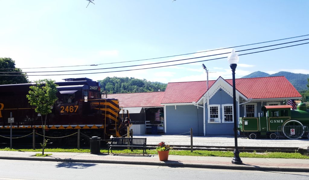 A nice tourist comes up and pets Birdie. I watch the other tourists looking at the train and taking pictures. Several squeaky cars drive by because the coffee shop, Mountain Perks, is near the stop light. A service dog comes by and Birdie is offended that he didn’t even see her. She doesn’t understand that the german shepherd is working. At least she doesn’t bark at it. Birdie does turn to me with a questioning look. A woman in the group smiles at Birdie as though she understands the small dog’s confusion.