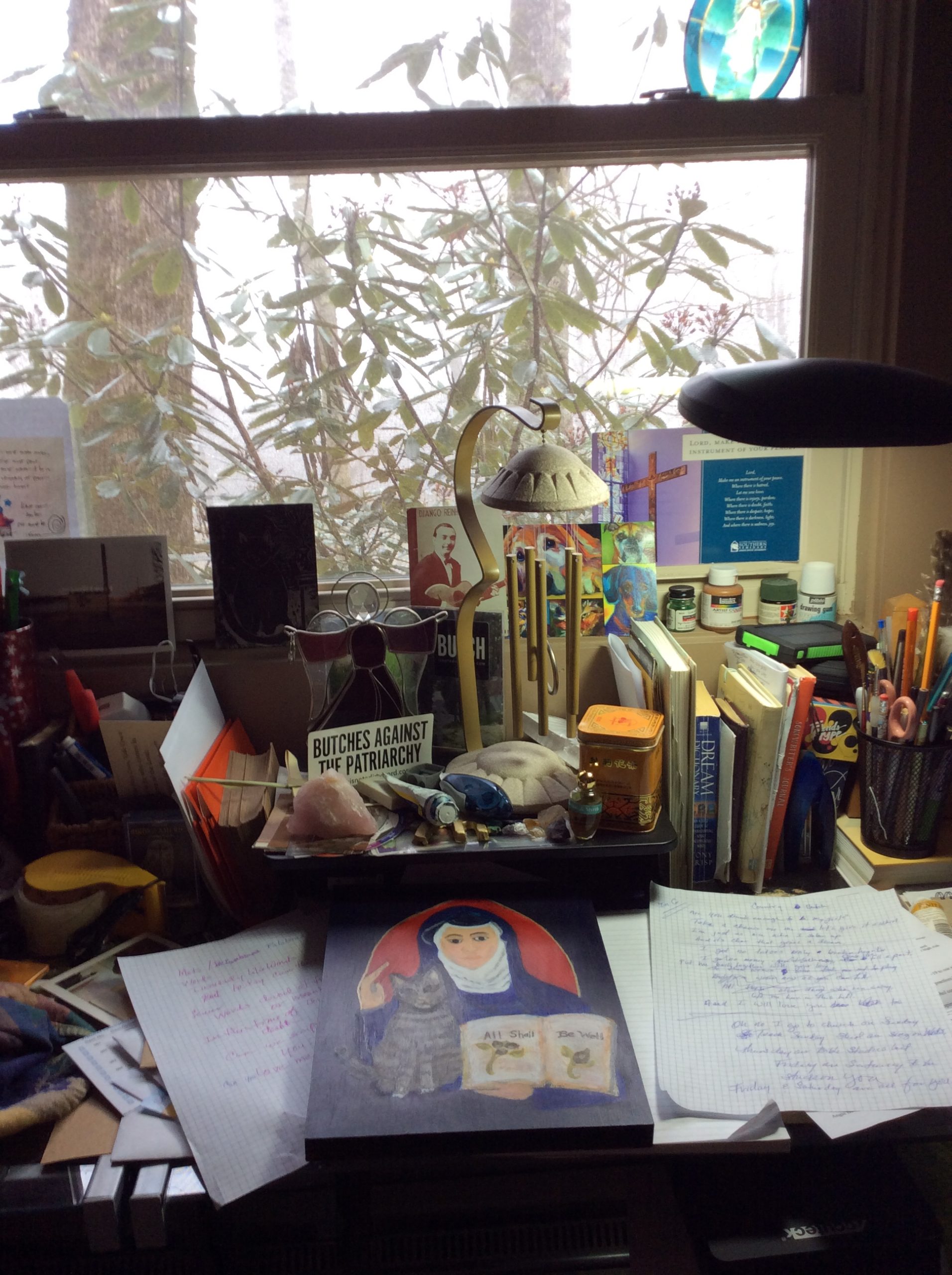 Trying to check the news of today while also praying, it is hard to finish this essay. I check on the black bean soup I’m cooking. Write a paragraph, then research the news. The news is too overwhelming causing me to stop writing because the angst of the situation begins to choke me. For fifteen minutes, I work on the icon project of St. Julian of Norwich and her holding the words, “All shall be well.” Though it calms me for the time while working on the painting, the question now arises, “when?” When will all things be well again?